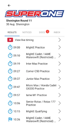 Racehub is an app which gives you close interaction with your kart club. Access all your events from all your clubs in one place, receive in-event notifications and messages from your clubs, as well as access live timing and see the documents on the event noticeboard. If you're a spectator, you can easily access live timing for current events, as well as look back at all the previous results from your favourite clubs.