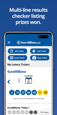 The EuroMillions Results app helps you stay up to date with winning numbers and raffle codes on the go. Check your tickets as soon as results are available to see if you’ve won!