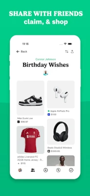 With Giftful, adding wishes is simple. Use our in-app browser or tap the share icon from any app to add gifts from any website. We'll automatically pull in the details—no copying and pasting needed. You can even add custom gifts, experiences, or cash fund requests.
