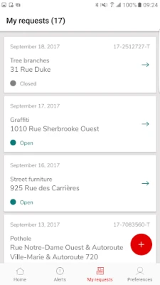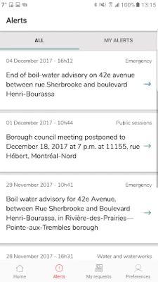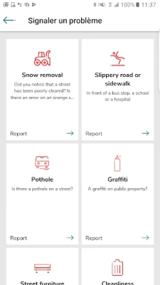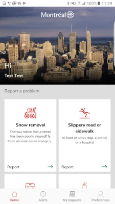 The Montréal - Resident Services app is free and easy to use. The app enables you to ask the city to address various situations, everywhere in Montréal.