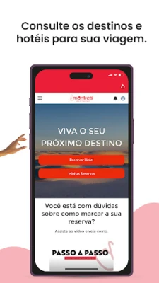 Baixe gratuitamente o aplicativo da Montreal Viagens, consulte os melhores hotéis no Brasil e exterior e faça sua reserva a qualquer hora e em qualquer lugar pelo seu smartphone. Aproveite também e monte todo o seu roteiro de viagem baseado em nossas dicas de localização de atrações turísticas, praias, restaurantes, serviços médicos e muito mais. Além disso, você pode consultar a situação do seu plano de hospedagem e saldo de diárias de forma fácil, rápida e segura. Transforme sua viagem em uma experiência inesquecível com a Montreal Viagens. Quer adquirir um plano de nossos planos de hospedagem? Ligue 0800 610 2200 ou acesse viagensmontreal.com Aproveite e embarque em uma nova viagem com a gente.