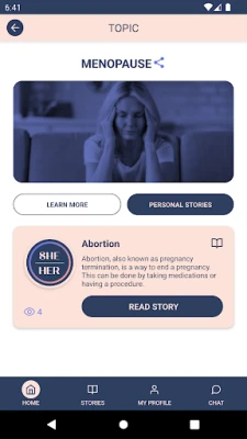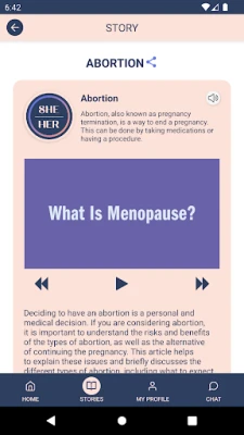 SheHer app focuses on female Health by providing information in audio, video, and text. Information is presented through women’s life stories and backed by medical information. SheHer app enables women to engage with certified medical doctors and clinical specialists via chat. Users can obtain personalized and informative medical advice, empowering them to take control of their health and make informed decisions.