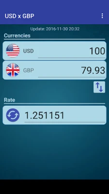 A simple currency converter from United States Dollar to British Pound and from British Pound to United States Dollar.