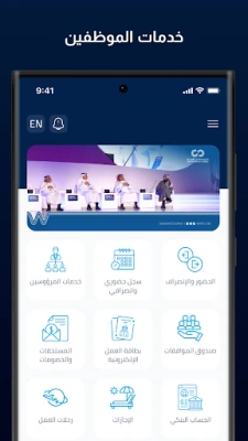 Also, Makes it easier for employees to access self-service from anywhere. eservices will enable the users to view dashboards as well as the possibility of requesting leave, allowances and many other services, In additional, provides the users the ability to process any request through the application directly and conveniently from anywhere.
