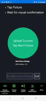 FIXTURE CHECK: Offers a convenient way to diagnose fixtures when returning to the warehouse. Tap fixtures one by one and the app will inform you of errors or warnings. Easily collect data from multiple fixtures in a standard CSV file to get a full overview of your fixtures and all can be accomplished without powering up fixtures.
