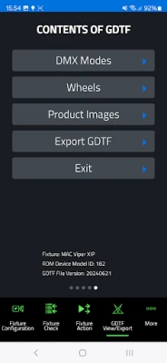 GDTF VIEW & EXPORT: Allows browsing of all Martin-made GDTF files to look up fixture details such as DMX Modes, Channel Functions, Gobo Images, and more. GDTF files can easily be exported from the app for easy use on any software using GDTF.
