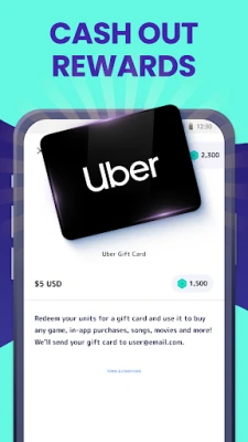 🎁 Cash out units in app to fetch gift cards to Uber, PayPal, DoorDash, Target, Amazon, and others
